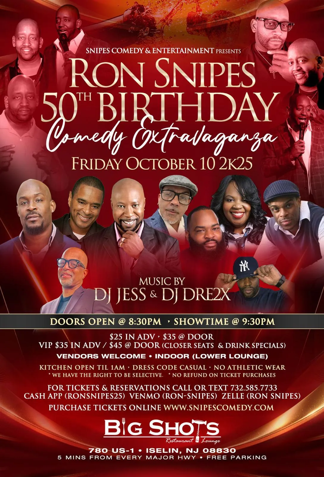 Ron Snipes is a comedian who knows how to command the stage and keep audiences rolling with laughter. With his quick wit, raw humor, and a knack for turning everyday moments into unforgettable punchlines, Ron is making waves in the comedy scene since 2005. Whether he's performing at top clubs, private events, or headlining his own shows, one thing’s for sure—when Ron is on the mic, it’s all laughs!